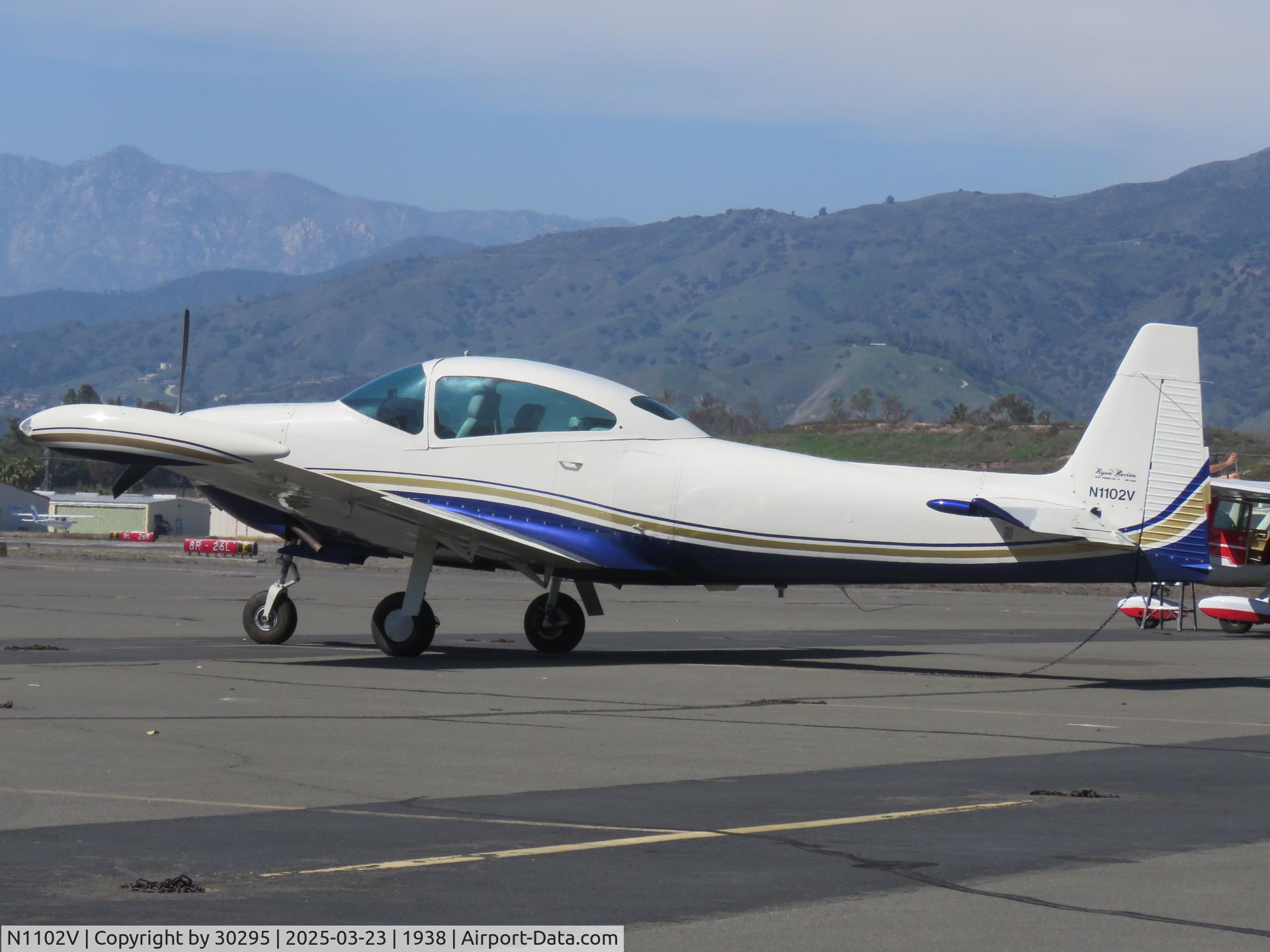 This RYAN NAVION A (N1102V) is a fixed wing single engine based in RANCHO MURIETA, CA. Registration status is currently valid registration.