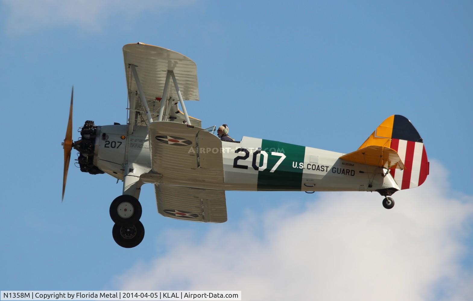 This 1941 BOEING B75N1 (N1358M) is a fixed wing single engine based in WILLIAMSON, GA. Registration status is currently valid registration.