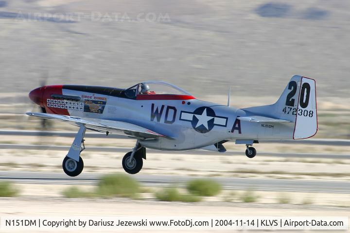 This 1944 NORTH AMERICAN F-51D (N151DM) is a fixed wing single engine based in BLAINE, MN. Registration status is currently valid registration.
