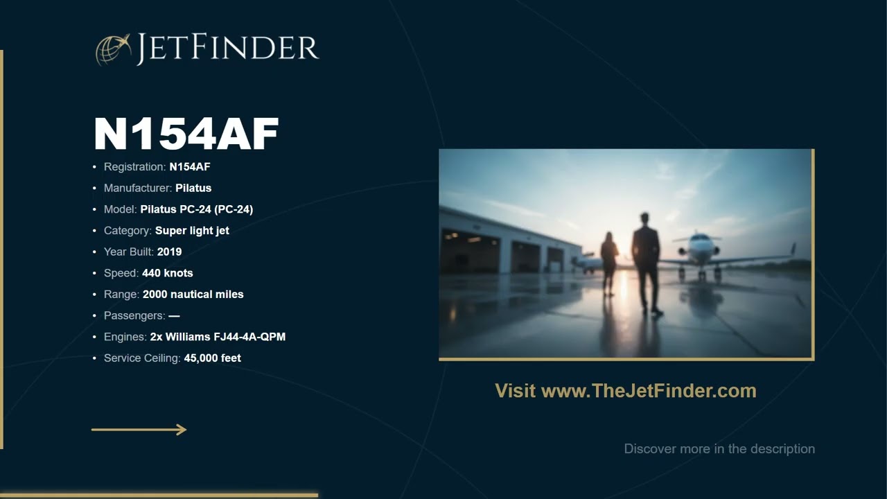 This 2019 PILATUS AIRCRAFT LTD PC-24 (N154AF) is a fixed wing multi engine based in PORTSMOUTH, NH. Registration status is currently valid registration.