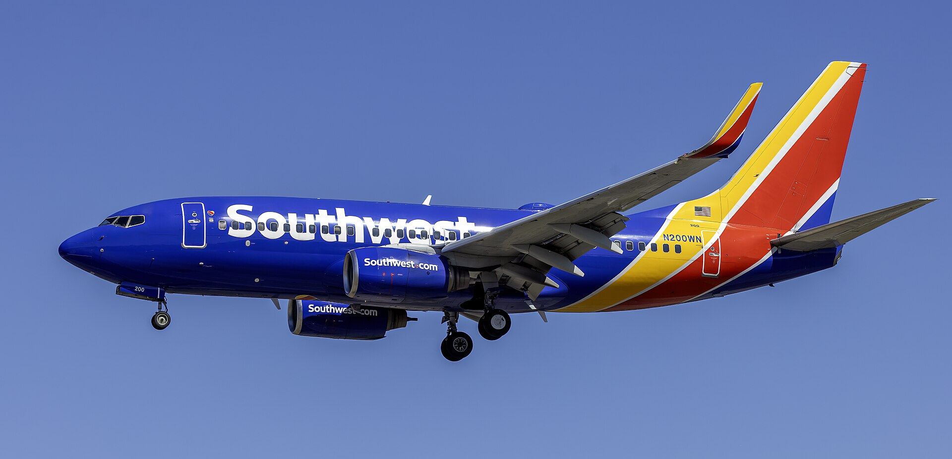 This 2005 BOEING 737-7H4 (N200WN) is a fixed wing multi engine based in DALLAS, TX. Registration status is currently valid registration.