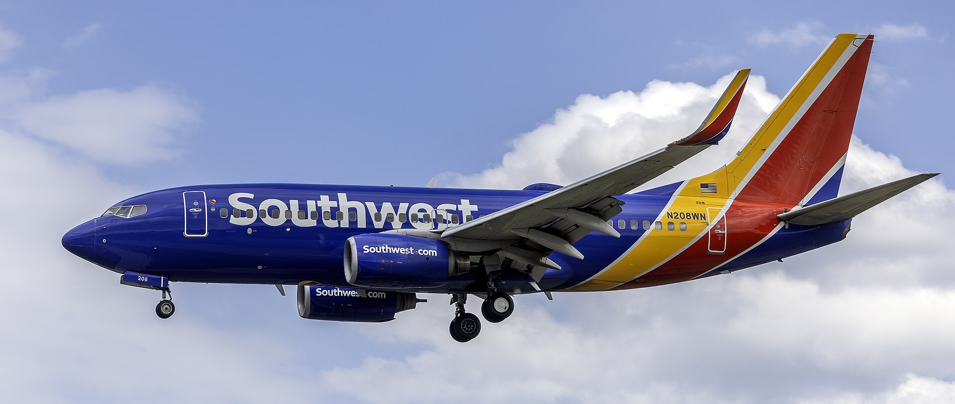 This 2005 BOEING 737-7H4 (N208WN) is a fixed wing multi engine based in DALLAS, TX. Registration status is currently valid registration.