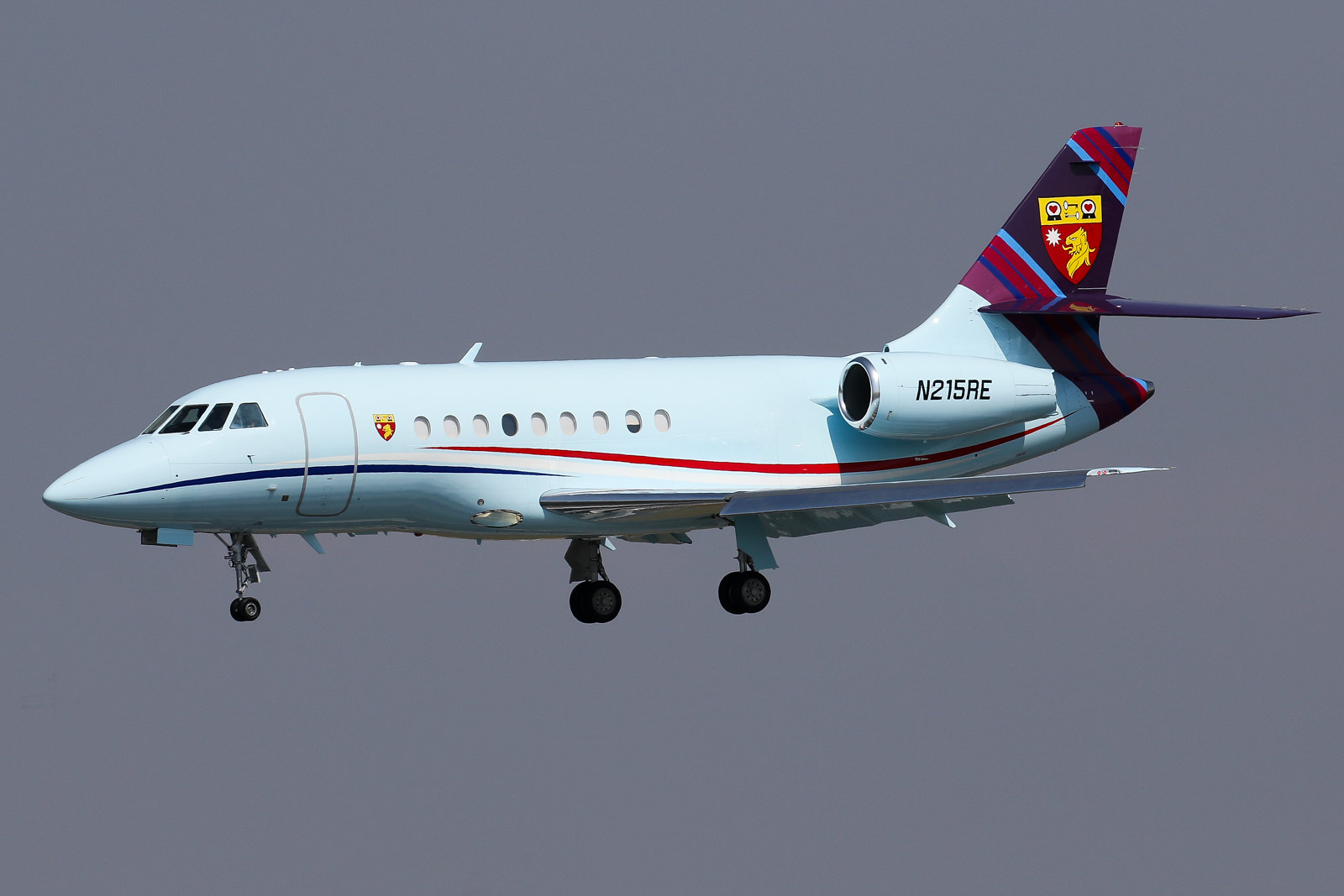 This 2004 DASSAULT AVIATION FALCON 2000 (N215RE) is a fixed wing multi engine based in WILMINGTON, DE. Registration status is currently valid registration.