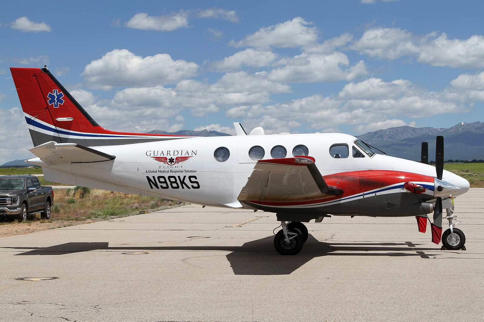 This 1997 RAYTHEON AIRCRAFT COMPANY C90A (N98KS) is a fixed wing multi engine based in LEWISVILLE, TX. Registration status is currently valid registration.